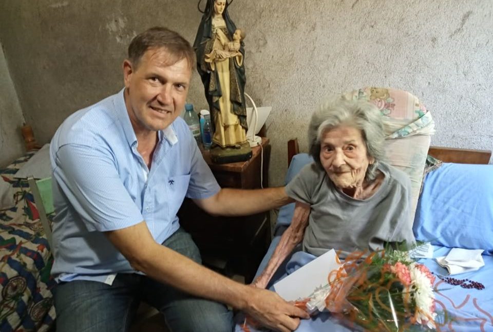 Para la ocasión; «Doña Ñata», recibió la visita del intendente Fernando Brasca, quien le llevó de obsequio un ramo de rosas.