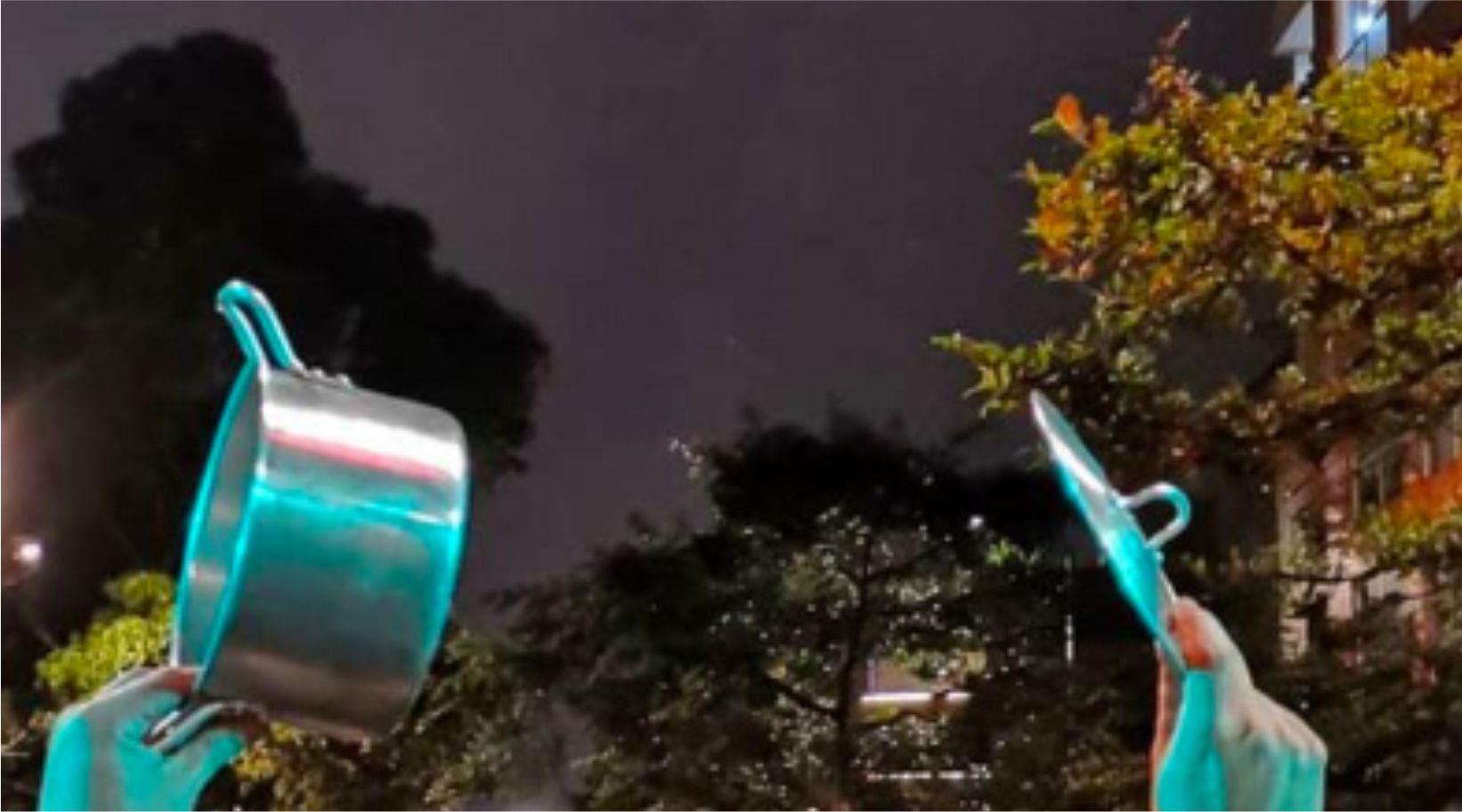 Los primeros cacerolazos comenzaron a las 21.30, luego de los aplausos para reconocer la tarea de los trabajadores de la salud en la lucha contra el Covid-19 y de entonarse el Himno Nacional Argentino.