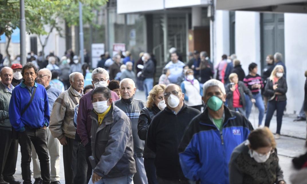Miles de beneficiarios realizaron desde temprano largas colas ante los bancos, que volvieron a abrir sus puertas para permitir el pago de haberes y subsidios de la Anses, en muchos casos sin respetar el distanciamiento social recomendado frente a la pandemia de coronavirus.