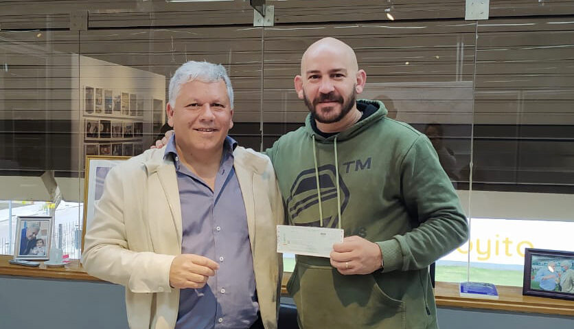 Gustavo Benedetti, intendente de Arroyito, entregó una ayuda económica a la Fundación de Contención para Adictos a las Drogas de la localidad de Obispo Trejo, coordinado por Lucas Ferace.