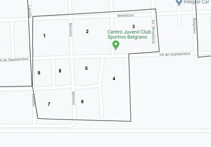Desde el municipio compartieron el plano de las manzanas que desde el día de hoy serán visitas y fumigadas. Además aclararon que la fumigación, interna y externa de cada vivienda de las manzanas incluidas en el mapa, será realizada por personal del ministerio de salud más colaboradores aportados por la entidad municipal.