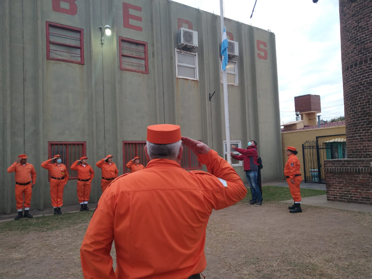 La intendenta Cristina Cravero, junto al cuerpo de bomberos y personal retirado, llevaron a cabo en la mañana un acto sencillo en el cuartel, donde se realizó el izamiento de la bandera nacional y entonación de nuestro himno.