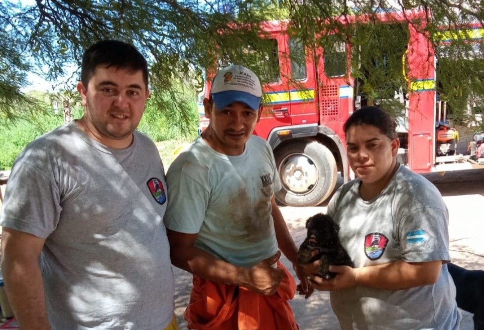 Bomberos Voluntarios de Río Primero rescataron a un cachorro en la zona rural de la localidad
