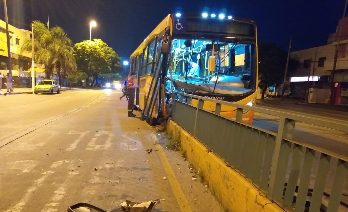 Un espectacular choque ocurrió en la mañana de este miércoles cuando un colectivo de la empresa Coniferal se incrustó en un puente de avenida Sabattini, a la altura de la calle Tolosa, en la zona sudeste de la ciudad de Córdoba.