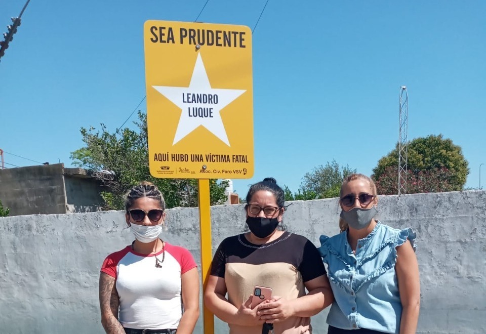 El pasado 7 de enero, Gustavo Benedetti junto a la Asociación Civil Foro de Familiares de Víctimas de Siniestros Viales colocaron un cartel de Estrella en memoria de Leandro Luque.