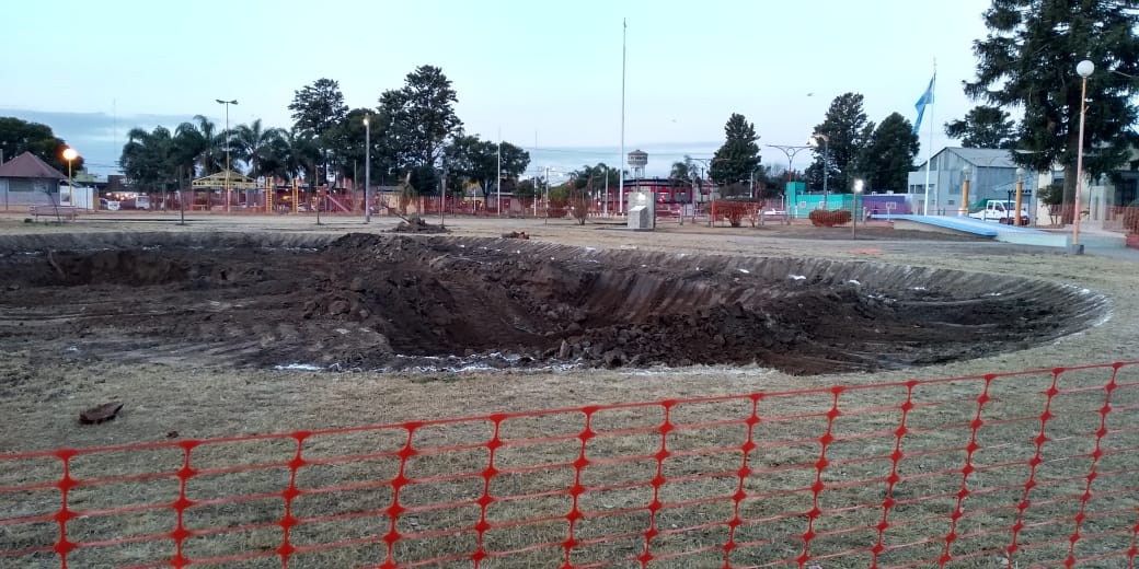 Esa misma mañana, la intendente Cristina Cravero anunció que en dicha plazoleta se crearía un lago artificial y colocación de pérgolas. Corren los días y sus palabras se ven en obras.