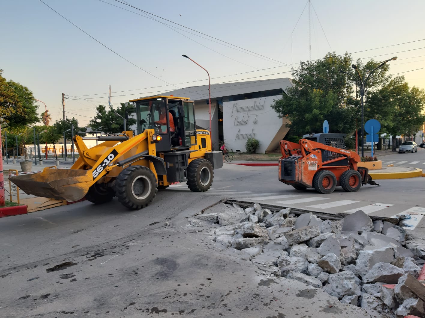 Desde la mañana de hoy, personal municipal de Arroyito se encuentra arreglando la carpeta asfáltica dañada en General Paz y Rivadavia, la esquina de la sede municipal y la Casa de la Cultura, debido a las altas temperaturas.