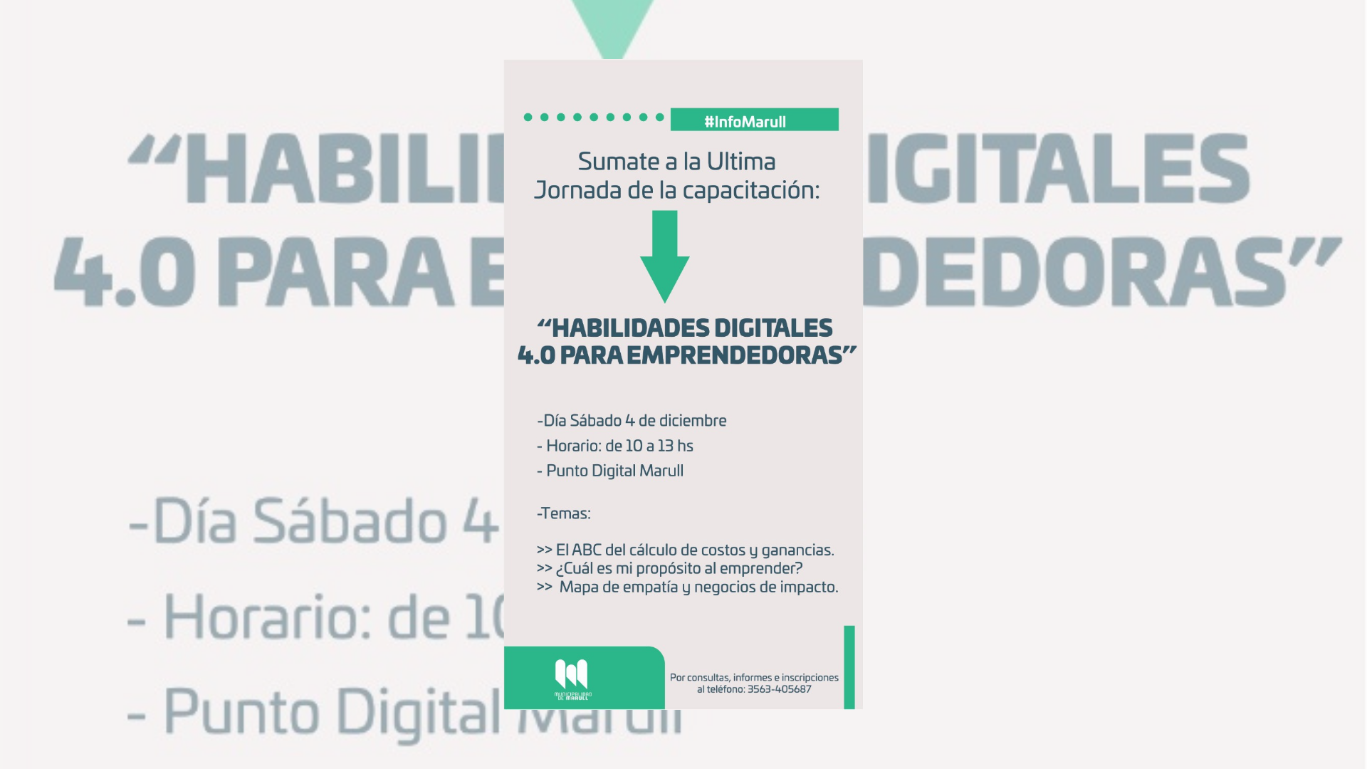 Concluirá el ciclo de «Habilidades digitales 4.0 para emprendedoras» en Marull