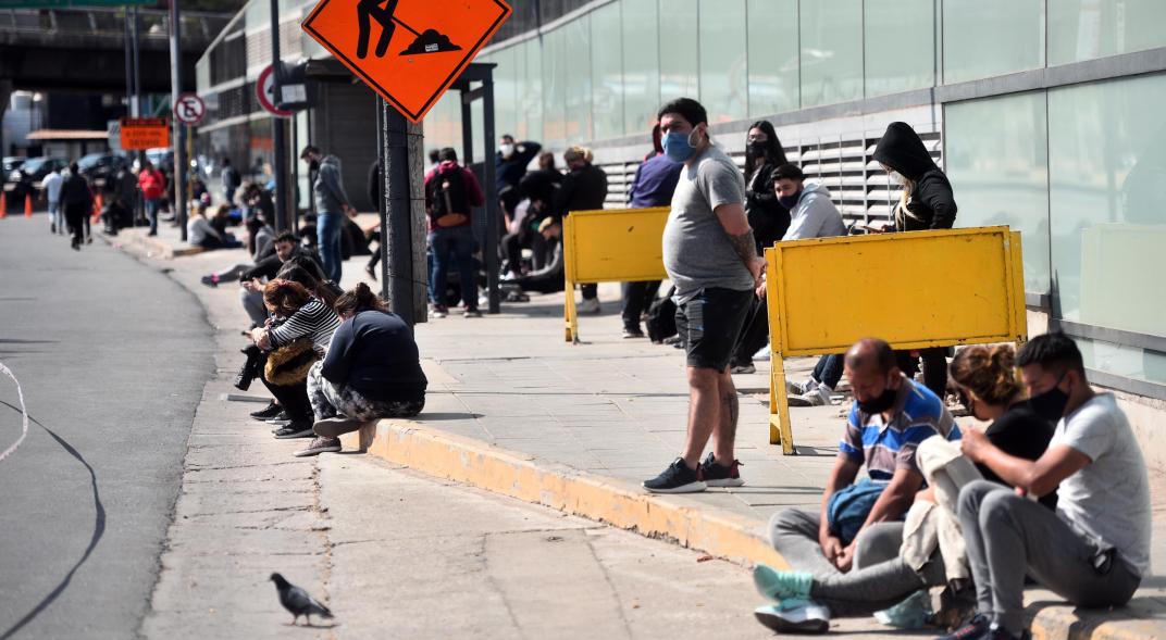 Desde la madrugada la gente hace largas colas para poder saber si tiene o no coronavirus. Desde ayer, la Nueva Terminal de Ómnibus es centro de testeos.
