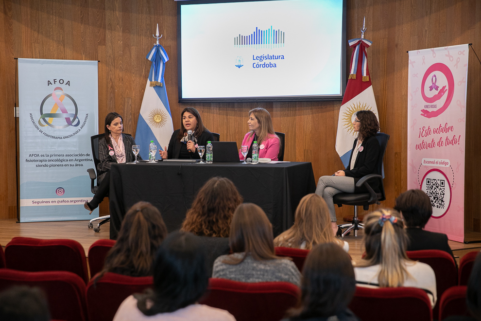 Fernández fue acompañada por María José Verde, presidenta del Colegio Profesional de Kinesiólogos y Fisioterapeutas de Córdoba; Andrea Mendoza, titular de la Asociación de Fisioterapia Oncológica Argentina (AFOA), y Sofía Perotti, vicedirectora de la Escuela de Kinesiología y Fisioterapia de la Universidad Nacional de Córdoba.