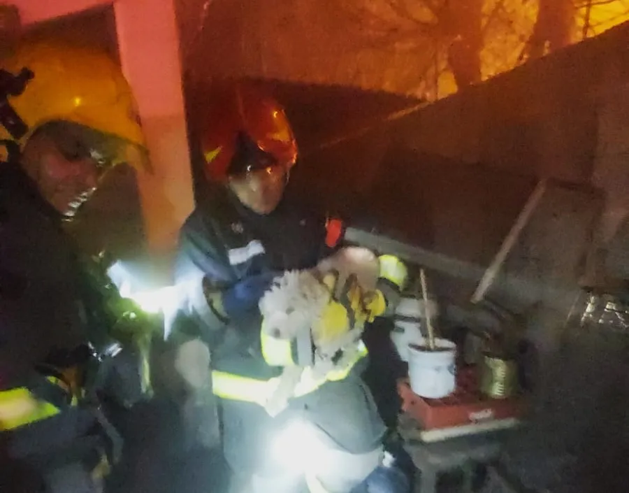 La rápida intervención de los Bomberos evitó que las llamas se propagaran aún más y se destacó el valiente acto de rescate de un perro perteneciente a las personas afectadas.
