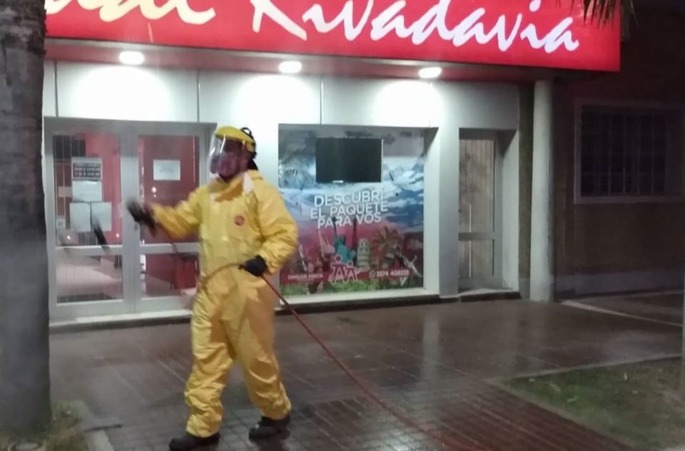 Desinfectaron calles y veredas en los puntos de mayor circulación