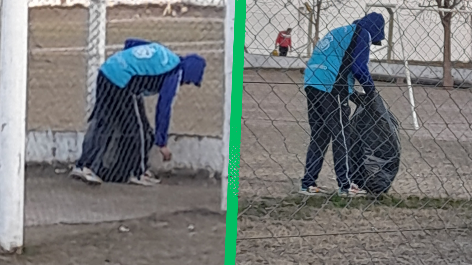 Caco Barrionuevo fue captado por una ciudadana cuando al término de un partido, entre Atlético de Santa Rosa y el Club Belgrano de Río Primero, limpió los alrededores de la cancha.