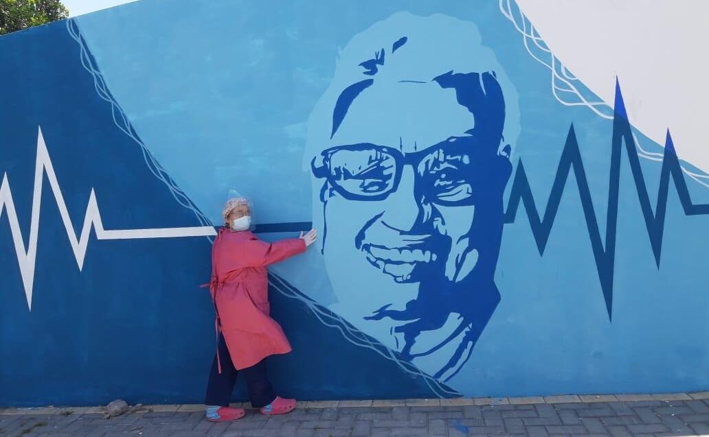 En su honor también se había pintado un mural en el sanatorio el pasado mes de noviembre, con la participación de sus compañeros de trabajo.