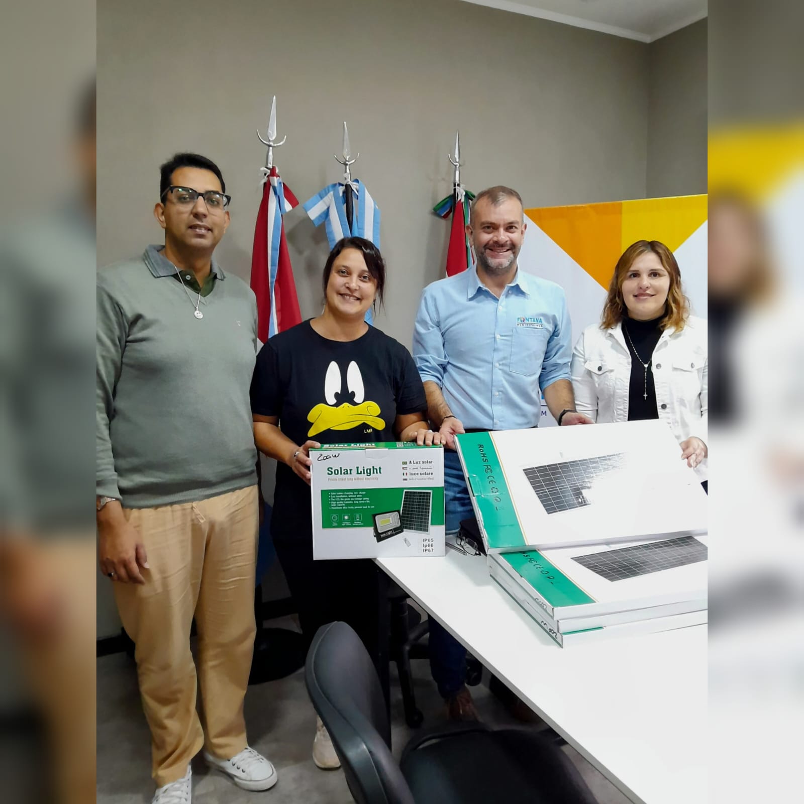 El intendente de Villa Fontana entregó luminarias solares y pintura a una escuela secundaria