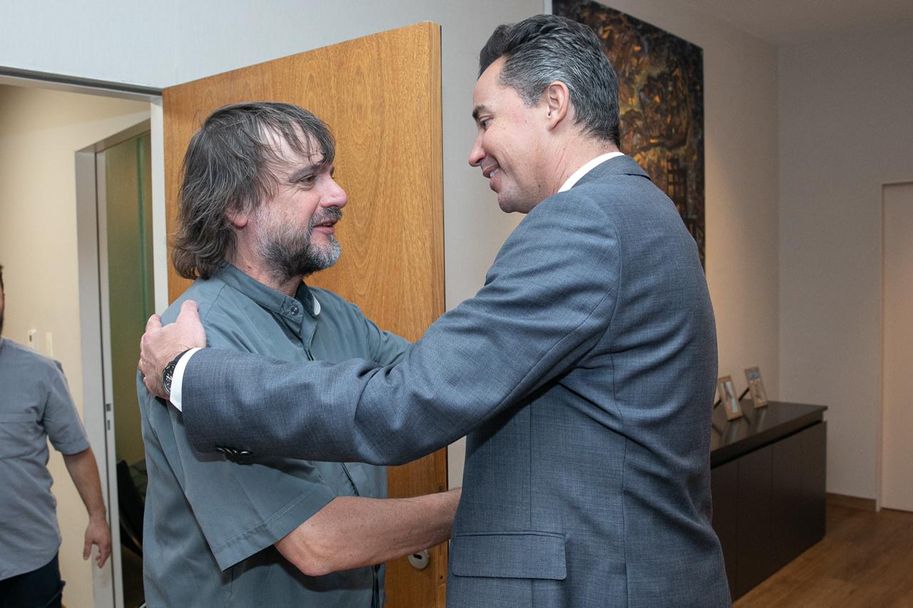 El vicegobernador Manuel Calvo recibió al padre José María “Pepe” Di Paola. Quién viene realizando una peregrinación en distintas ciudades del país bajo la consigna: “Ni un pibe menos por la droga”.