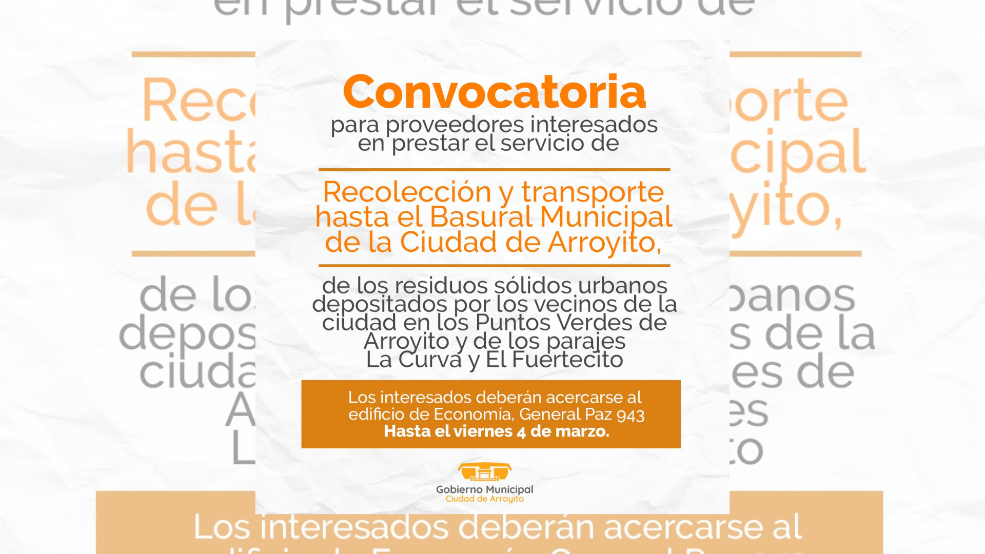 La municipalidad de Arroyito abrió la convocatoria para proveedores interesados en prestar el servicio de Recolección y transporte hasta el Basural local de los residuos sólidos urbanos depositados por los vecinos en los Puntos Verdes de la ciudad y de los parajes La Curva y El Fuertecito.