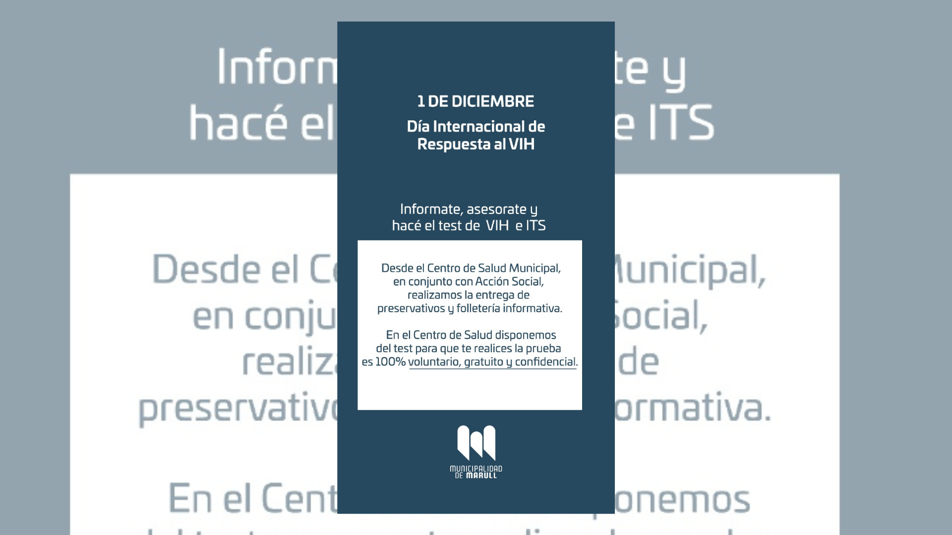 En el marco del día internacional de respuesta al VIH (que fue el pasado 1 de diciembre), el Centro de Salud Octavio Paolasso de Marull junto a Acción Social realizan la entrega de preservativos y folletería informativa.