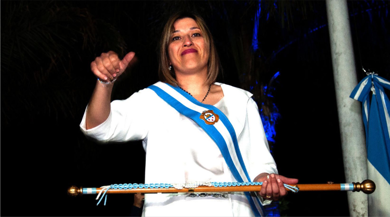 El traspaso de mando, del ahora ex intendente, Carlos Borgiattino a la actual mandataria municipal, fue de lo más exclamado por la concurrencia. Cravero, luego de firmar al acta de transferencia de cargo, recibió de Borgiattino los atributos municipales: la banda y el bastón.