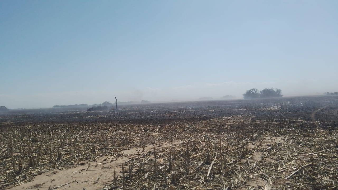 El hecho inció en un campo y comenzó a esparcirse para quemar el pasto sobre la banquina y rastrojo de maíz.
