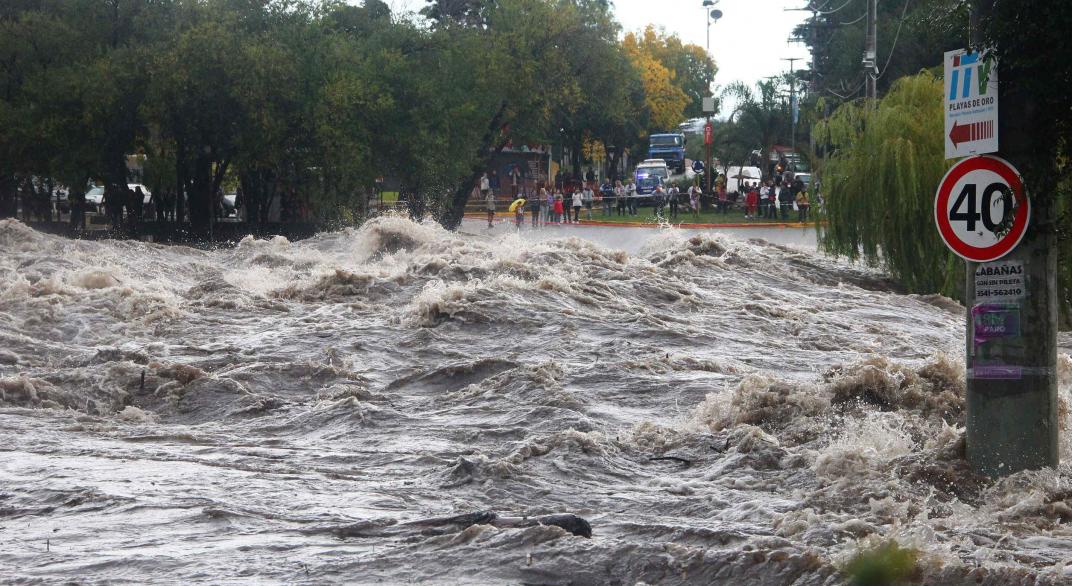 Las intensas precipitaciones durante toda la madrugada provocaron anegamientos en la Capital, pero también abruptas crecientes en la mayor parte de los ríos serranos. Se multiplicaron los alertas emitidos por Defensa Civil debido a los violentos desbordes y puentes superados por los torrentes fuera de cauce.