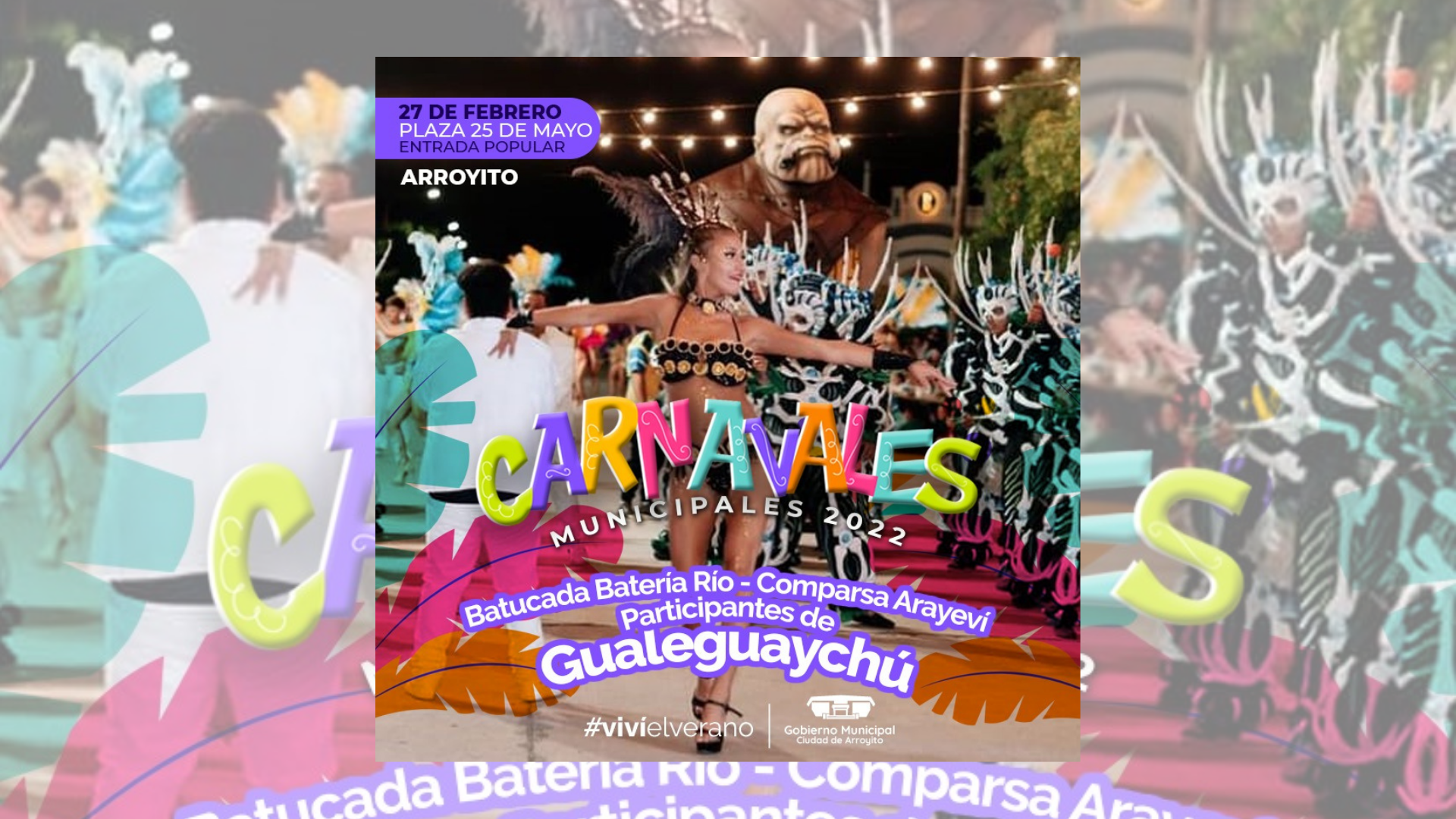La misma está recorriendo todos los carnavales del país. En esta ocasión engalanará la noche de cierre junto a las comparsas Samay Yasy de Suardi y la Municipal de Arroyito «SUYAY», además de la participación de las de Aramyverá La Curva, Tava Porá Arroyito/Colonia Marina, Taperigua, Monte Cristo y la Batucada Luz de noche de Río primero.