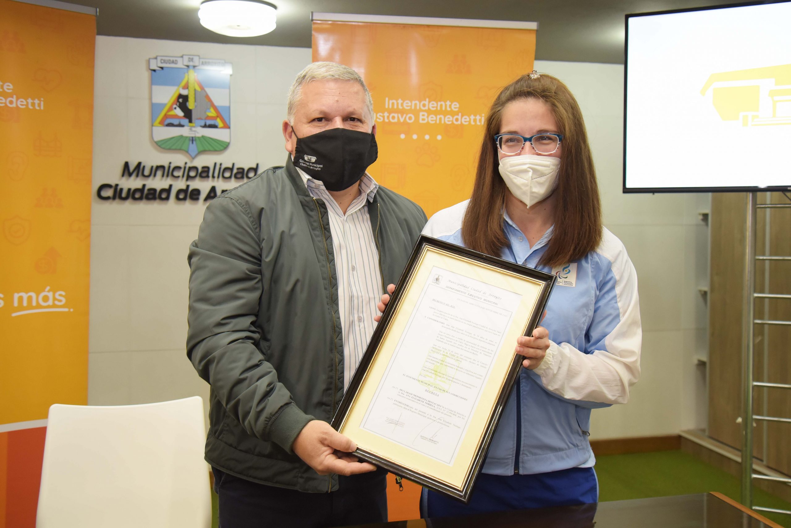 El Intendente junto a la Dirección de Deportes, la Dirección de Discapacidad y Accesibilidad y la Dirección de Modernización, hizo entrega de reconocimientos a la nadadora tras su regreso de los Juegos Paralímpicos de Tokio 2020