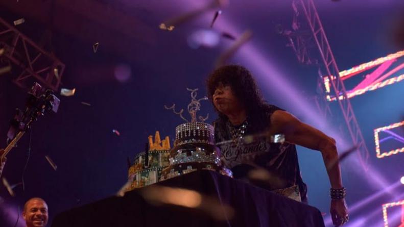 Por supuesto que el Mandamás hizo cambio de look y también sopló las 69 velitas de la enorme torta que le regalaron. Estuvo acompañado de su familia, que siempre está al pie del cañón. También cantó junto a su hijo el Carli Jiménez, con quien hicieron su hit de verano «Rompiendo los huevos».