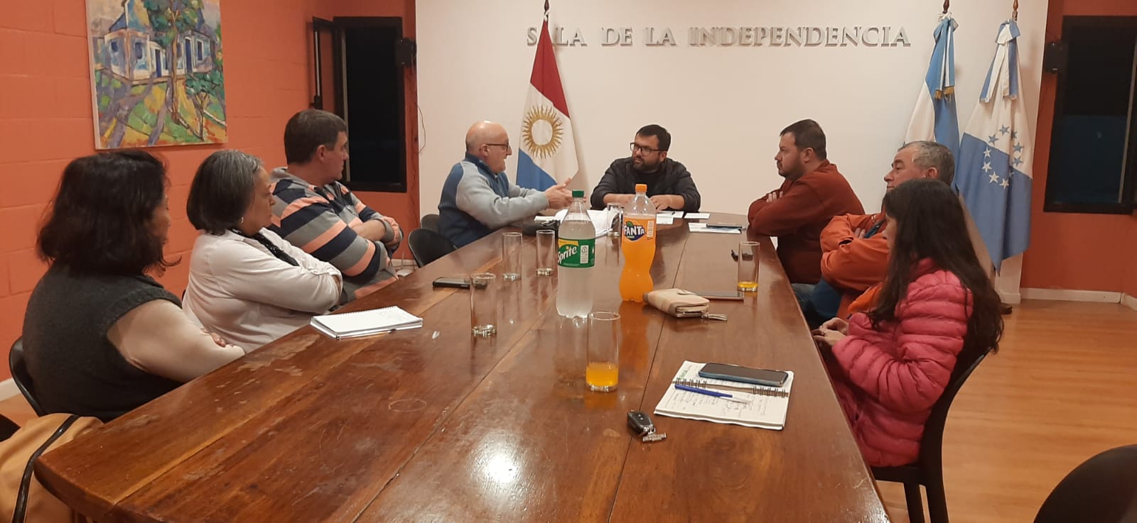 El titular del Poder Ejecutivo de Marull, Gabriel Faletto, acompañado de autoridades municipales, mantuvieron una reunión en la Sala de la Independencia con el cura párroco de la Iglesia Católica y miembros del Concejo Pastoral y Económico.