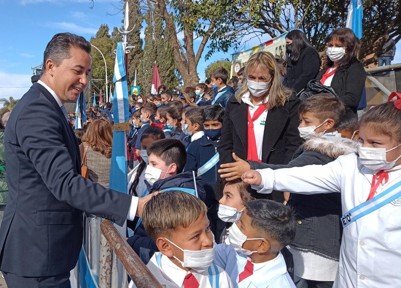 El vicegobernador presidió el acto por el Día de la Bandera en la Plaza Sarmiento de Monte Cristo. Además les tomó promesa alumnos de diferentes escuelas del Departamento Río Primero.