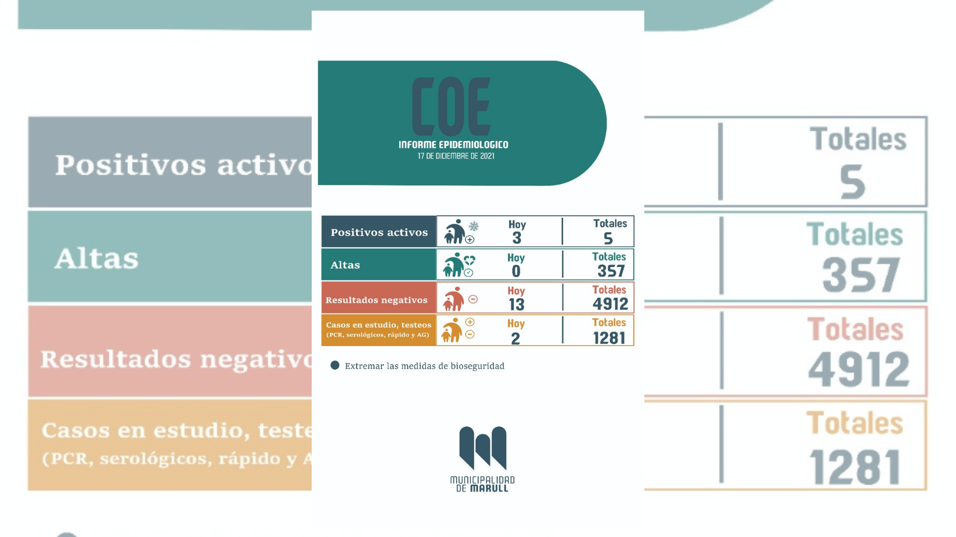 En el informe epidemiológico de hoy, el Comité de Emergencia de Marull dio a conocer que hubo tres nuevos positivos de Coronavirus, contabilizando un total de 5 casos activos.