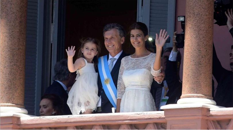 Las primeras imágenes que aparecen son con su esposa Juliana Awada y su hija Antonia en el balcón de la Casa Rosada, saludando a la gente el día de su asunción.