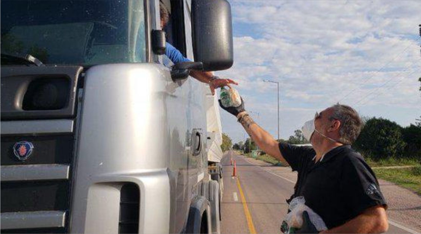 Un hombre pidió permiso en un control de Gendarmería, para entregar alimentos y agua a los camioneros que transitan diariamente por la Ruta 9 norte, a la altura de Sinsacate.