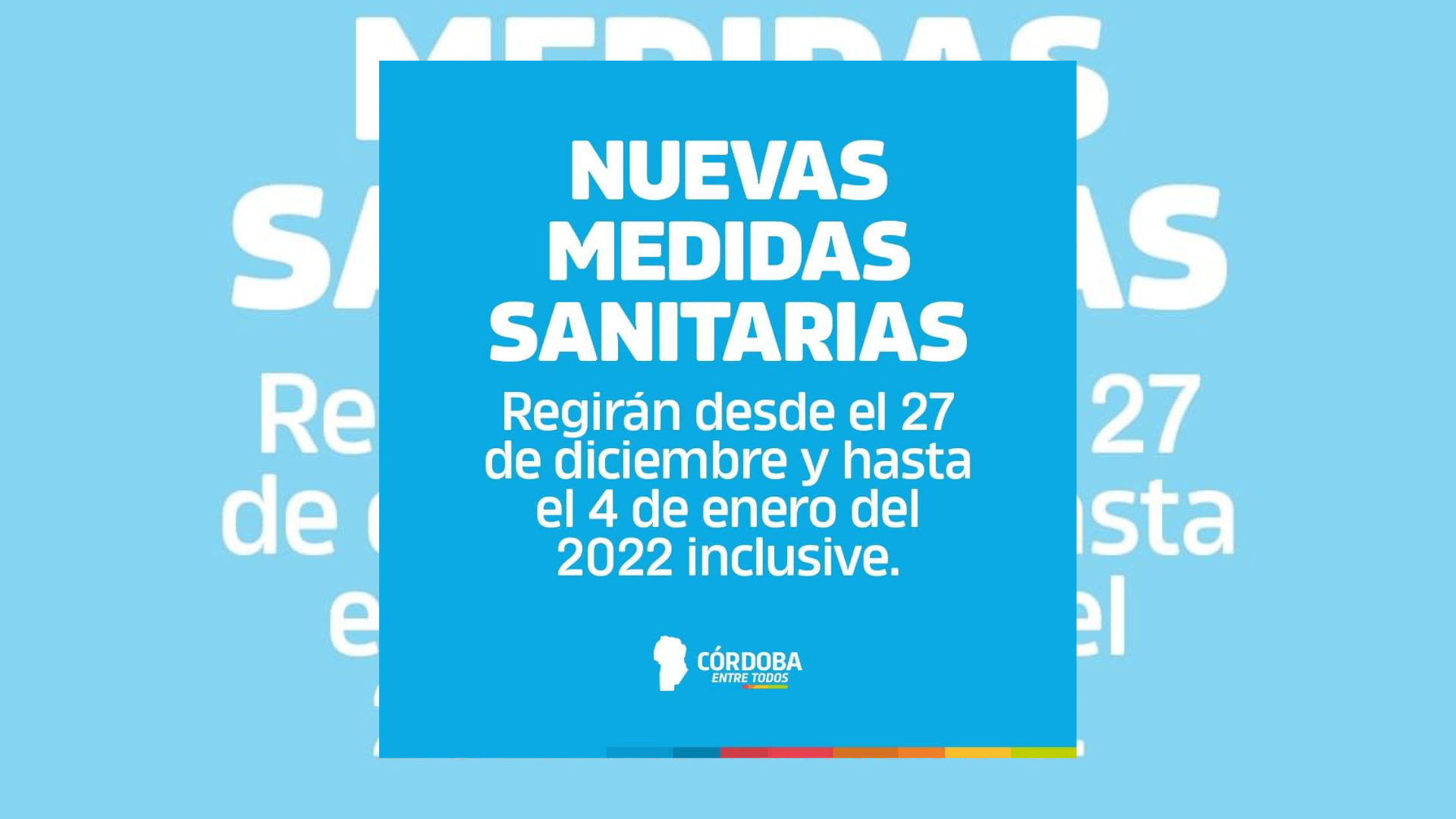 Rigen desde hoy y hasta el 4 de enero inclusive. Se dispuso la suspensión de eventos masivos, reducción de aforo para salones de eventos y la implementación de una tercera dosis.