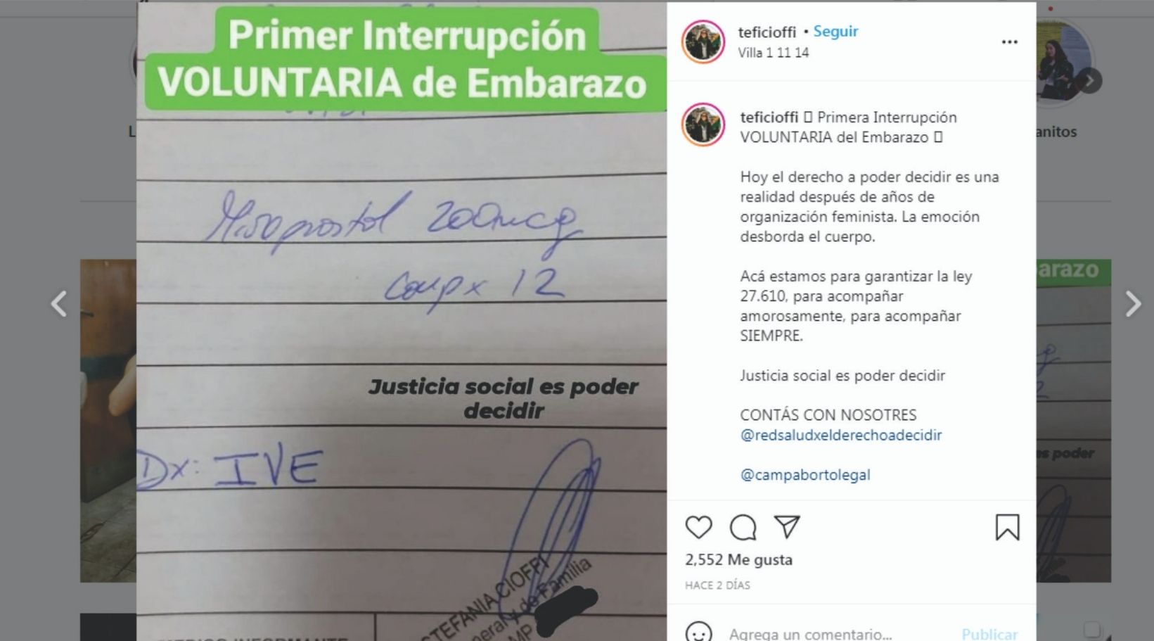 Lo dio a conocer en Instagram, Estefanía Cioffi, una médica que pertenece a la Red de Profesionales de la Salud por el Derecho a Decidir.