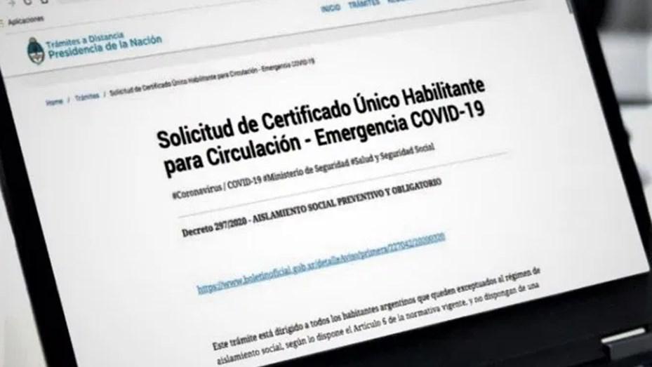 Personal e intransferible, el «Certificado Único Habilitante para Circulación- Emergencia COVID19» se tramita ingresando a https://tramitesadistancia.gob.ar/, y debe presentarse junto al DNI a «requerimiento de la autoridad competente al momento de circular por la vía pública», según estableció la resolución 48/2020 del Ministerio del Interior.