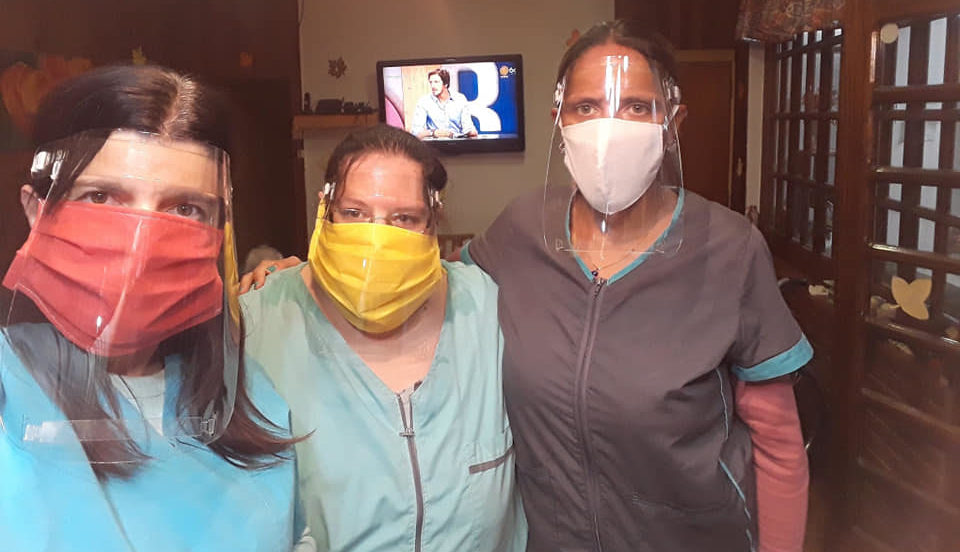 Recientemente recibieron de regalo algunas mascaras que son utilizadas por parte del personal que trabaja en el cuidado de los huéspedes que se encuentran en las instalaciones. El uso de las mismas lo están realizando con un barbijo por debajo cada vez que salen a la calle a comprar y también así las enfermeras lo usan cuando circulan desde la casa hasta la residencia.