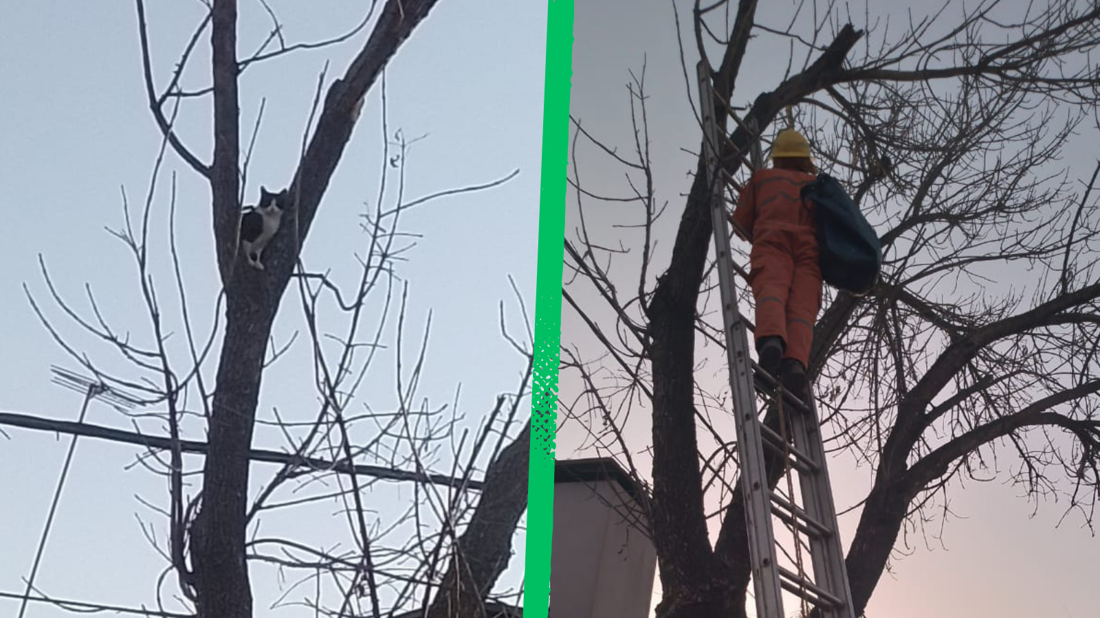 Río Primero: Bomberos Voluntarios rescataron un gato que estaba atrapado arriba de un árbol