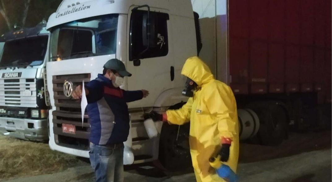 En tanto, personal policial procedió a desinfectar el camión. Este martes, también se activó el protocolo sanitario para dos choferes, uno oriundo de Villa Dolores y otro de Paraguay.
