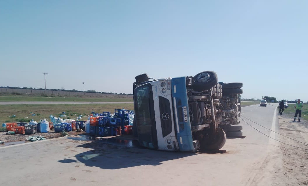 Se trata de un camión Mercedes Benz, el cual llevaba un cargamento de bidones de agua y era conducido por un hombre mayor de edad oriundo de Córdoba.