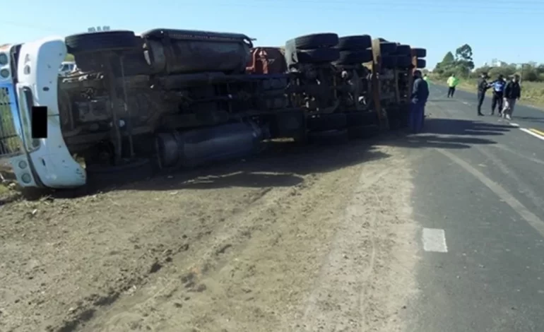 En el lugar, las autoridades constataron el vuelco de un camión Volvo FH el cual transportaba packs de agua saborizada. El vehículo era maniobrado por un hombre de 30 años de la localidad de Manantial, provincia de Tucumán. Esta persona comentó a los agentes que al llegar a una rotonda se desprendió la parte de la carga por lo que se produjo el hecho.