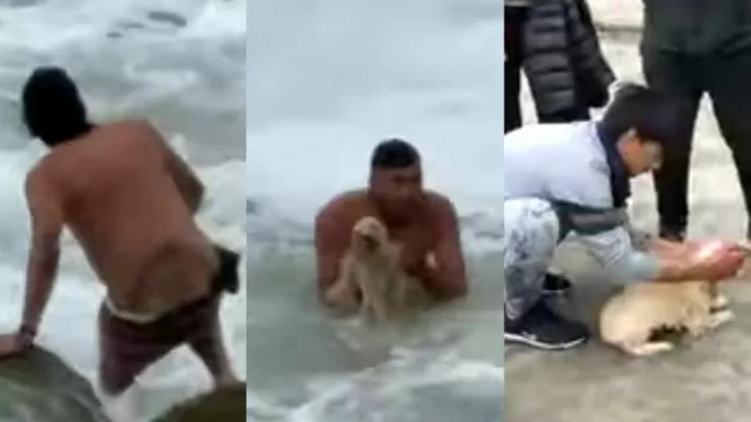 En ese momento un joven se quitó la ropa, bajó por la escollera en dirección a donde estaba el perro y se arrojó al mar y nadó hasta él para rescatarlo. El accionar heroico del hombre fue grabado por uno de los espectadores, en el video se lo escucha decir “Se cayó un perro, míralo, ahí se va a tirar este muchacho para rescatarlo”.