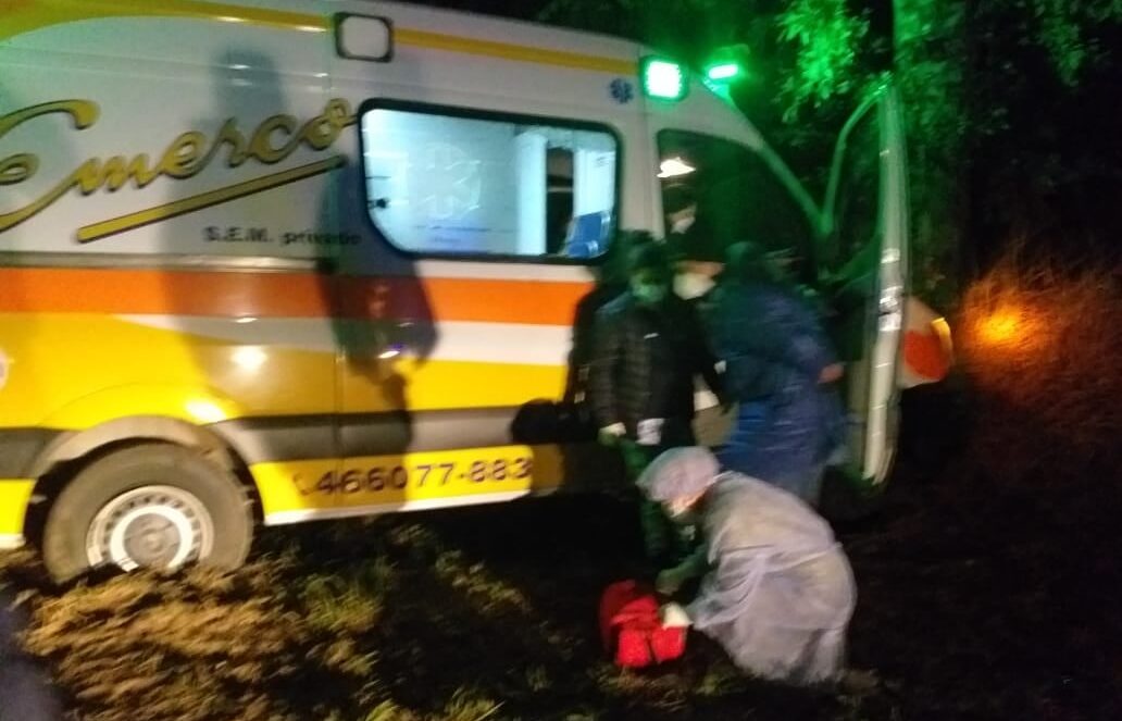 Al llegar al lugar, constataron que se trataba de una ambulancia de la Empresa EMERCO, que en un intento por esquivar un animal, el conductor perdió el control del vehículo, que se salió de la carpeta asfáltica e impactó contra un árbol.