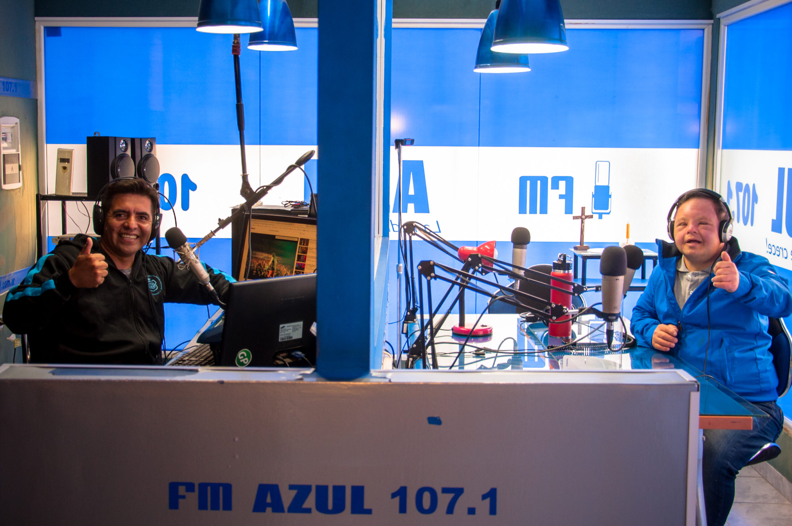 Entre miradas cómplices y picaras en el estudio de la Fm Azul, Ariel Isuani afirma: «Julio es el mejor locutor, como yo…». Y agrega: «Lo quiero mucho; con todo el corazón”.