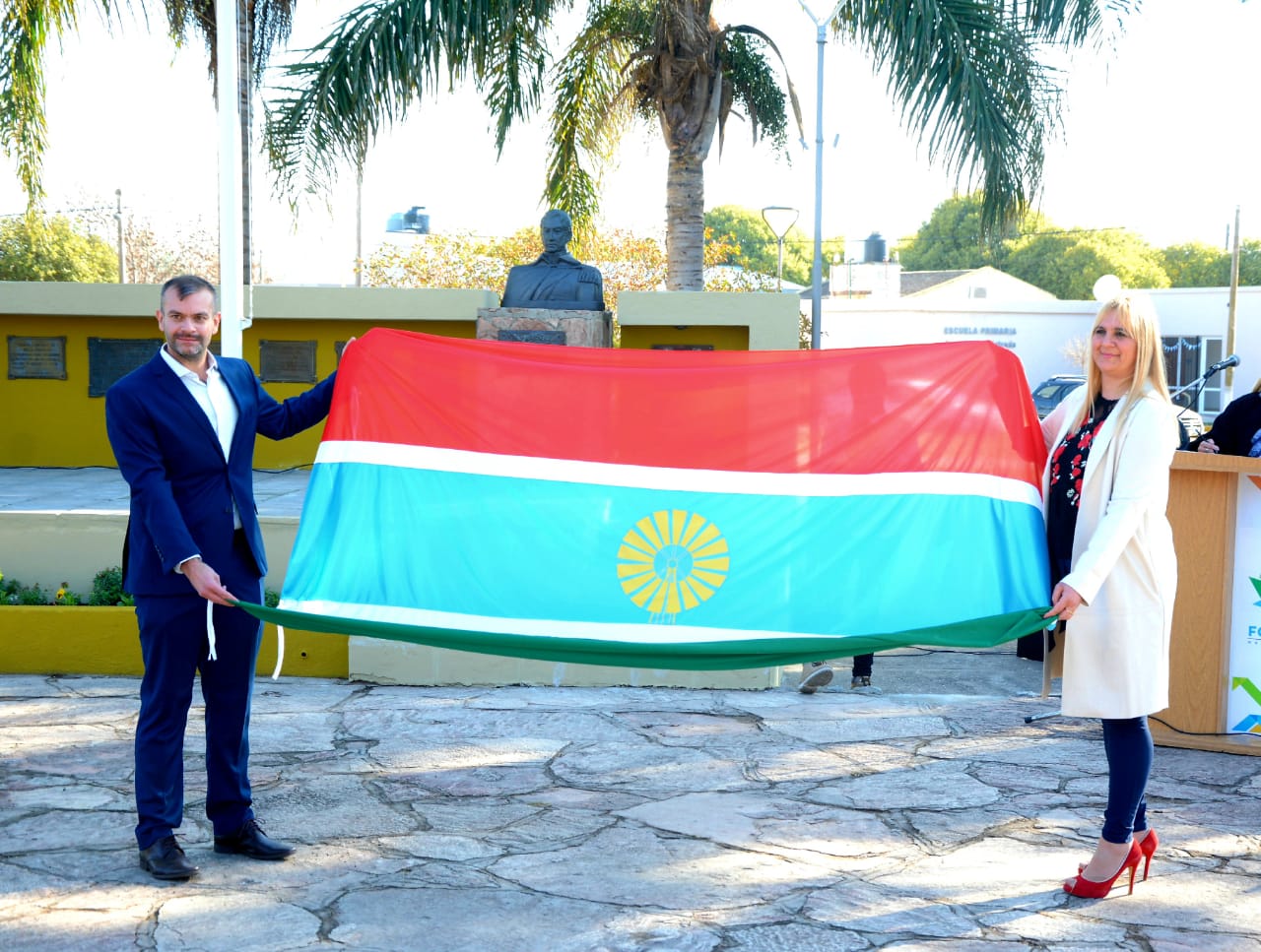 En la ceremonia entregaron un ramo de flores al fundador del pueblo, Ángel Fontana, acompañadas de un familiar descendiente de él. En el mismo se llevó a cabo la muestra e inauguración de la bandera local que, con la presencia de la creadora Lucinda Ahumada Pizarro bajo el seudónimo Alcón, fue izada junto a la bandera nacional y provincial.