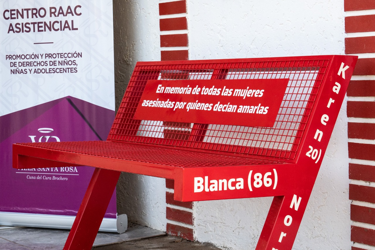 En Villa Santa Rosa fue instalado el tercer banco rojo en la casa del «Equipo de Prevención» buscando recordar justamente a las mujeres fallecidas por violencia de genero en la localidad.
